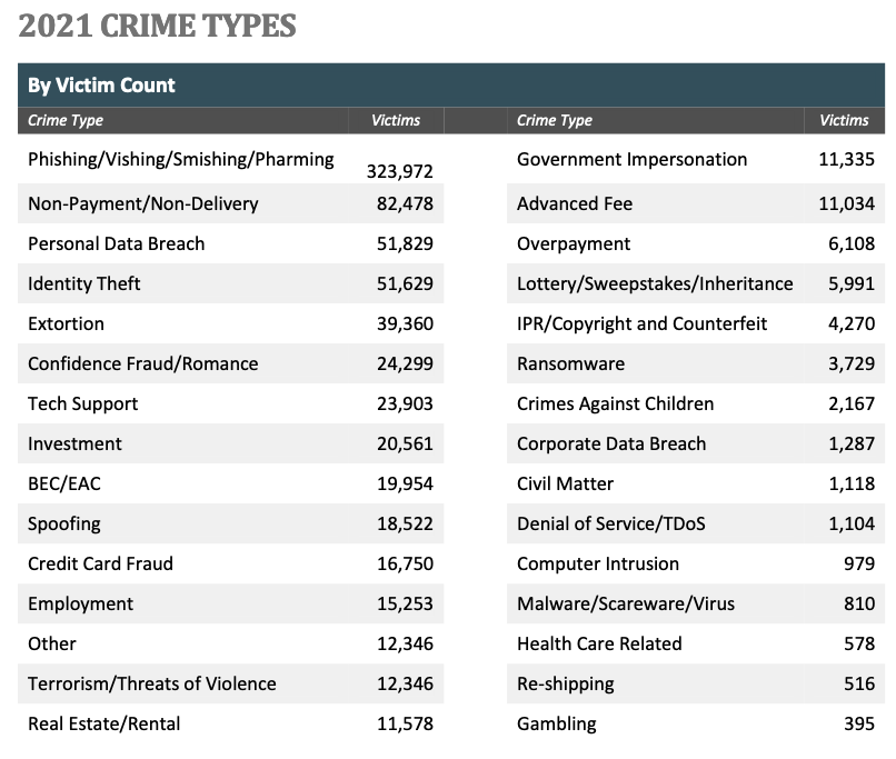 The FBI’s Internet Crime Complaint Center (IC3) puts out an annual report that summarizes the recent year’s experiences with Internet crime.