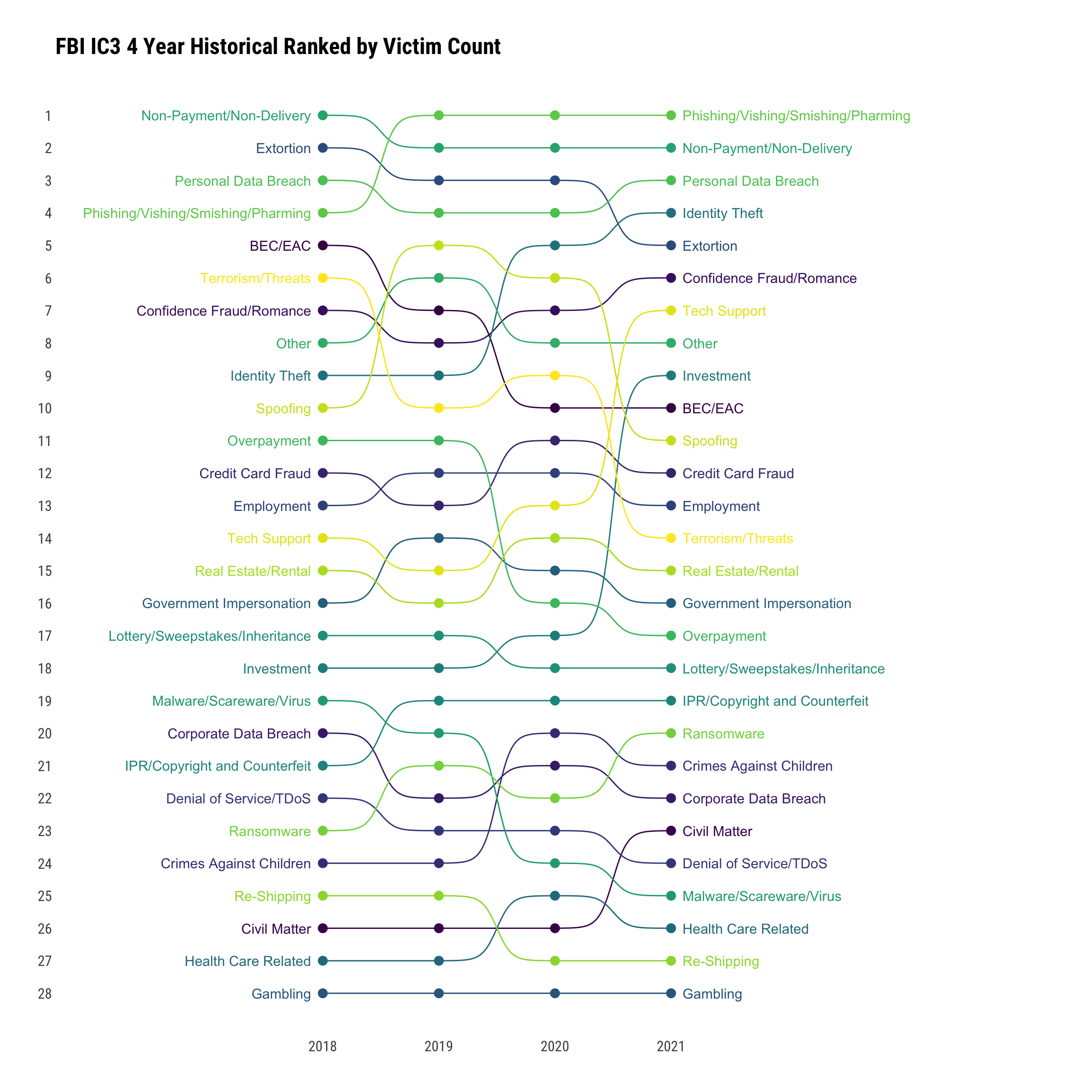 title = "FBI IC3 4 Year Historical Ranked by Victim Count",